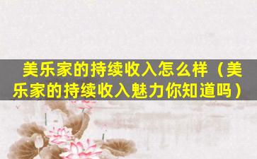 关于“美乐家的持续收入怎么样”,这个问题在知乎等社交平台上可能会有不同的回答,因为每个人的经历和结果都是独特的。一些人可能会分享他们通过美乐家获得稳定收入的成功故事,而另一些人可能会分享他们未能获得预期收入的负面经历。
