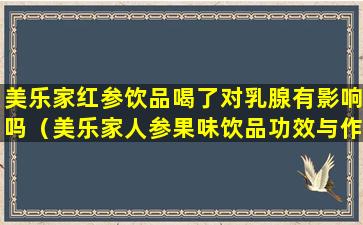美乐家红参饮品是一种含有红参成分的饮品,红参通常被认为具有一定的保健作用,如增强免疫力、改善疲劳等。关于红参饮品对乳腺是否有影响,目前没有明确的科学研究数据表明红参饮品会直接影响乳腺健康。