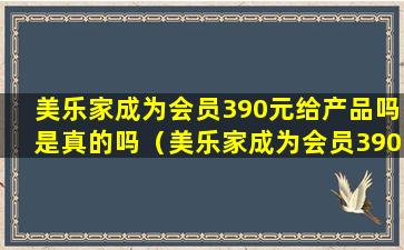关于“美乐家成为会员390元给产品”的说法,我无法提供确切的信息,因为这取决于具体的商家政策和促销活动。通常,商家会有不同的会员制度和促销策略,这些信息应该在官方渠道或者通过官方客服进行确认。