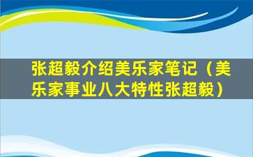 以下是一些可能包含在张超毅介绍美乐家的笔记中的内容: