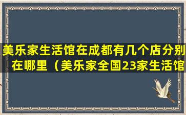 截至我的知识更新日期(2023年),美乐家(Melaleuca)是一家总部位于美国的健康与家居产品公司,它在中国也有业务。由于美乐家的店铺信息可能会随时间变化,我无法提供确切的、最新的全国23家生活馆的地址。