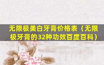 如果您在百度百科或其他任何地方看到关于无限极牙膏32种功效的描述,建议您谨慎对待,并查找更多权威的信息来源进行核实。同时,任何健康产品的功效都应该基于科学研究和临床试验的结果,而不是夸大的宣传。