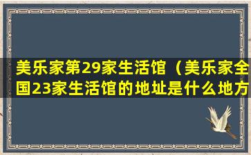 如果您提到的“美乐家第29家生活馆”是指某个特定地区或国家的第29家生活馆,那么这个信息可能需要通过美乐家的官方渠道或当地的新闻发布来确认。由于美乐家的业务扩展和店铺开设情况可能会随时间而变化,建议您直接访问美乐家的官方网站或联系其客服部门以获取最新的店铺信息。
