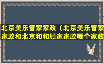 "北京美乐管家家政" 可能是指一家位于北京的家政服务公司。这类公司通常提供各种家庭服务,包括但不限于: