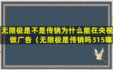 至于无限极能在央视做广告,这是因为央视作为中国的国家级电视台,它接受各种合法企业的广告投放。只要企业遵守中国的广告法和相关法律法规,就可以在央视等媒体上投放广告。无限极作为合法注册的企业,只要其广告内容符合规定,就可以在央视等媒体上进行广告宣传。