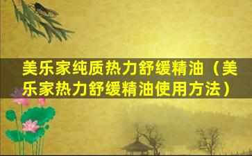 请注意,以上信息是基于一般精油的使用方法,具体到美乐家的热力舒缓精油,您应该参考产品附带的说明书或联系美乐家的客服获取最准确的使用指导。如果您是首次使用该产品,建议先咨询专业人士。