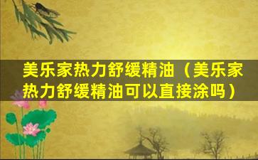 请注意,由于我无法访问最新的数据库,我无法提供关于“美乐家热力舒缓精油”的具体成分或使用说明。如果您需要详细的产品信息,建议直接联系美乐家或访问其官方网站。