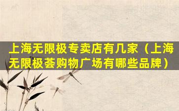 无限极是一家中国的直销公司,主要销售健康产品。关于上海无限极专卖店的数量,由于信息可能会随时间变化,我无法提供确切的数字。通常,无限极的专卖店或服务中心会分布在城市的不同区域,以便顾客能够方便地购买产品或获得服务。