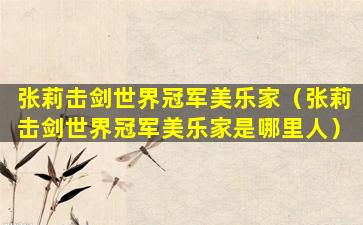 截至我所知的信息,张莉是中国的一位击剑运动员,她在国际比赛中取得了显著的成绩。关于“张莉击剑世界冠军美乐家”的具体信息,我无法提供确切的细节,因为这可能是一个特定事件或者是一个特定语境下的表述,而不是一个广为人知的事实。