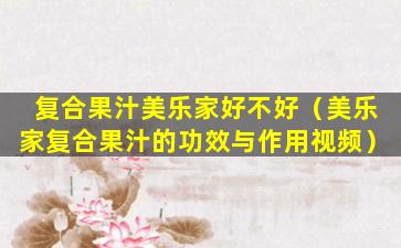 关于“复合果汁美乐家好不好”,这取决于几个因素: