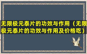 无限极(Infinitus)是中国的一个健康产品品牌,隶属于李锦记健康产品集团。元泰片是无限极的一款产品,通常被宣传为具有调节免疫、增强体质等功效。关于元泰片的具体成分、功效和作用,需要根据产品说明书或官方资料来确定。
