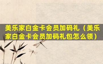 关于“白金卡会员加码礼包”,这可能是美乐家针对其白金卡会员推出的一种促销活动,旨在奖励这些高消费会员。这个礼包可能包含了一系列的额外产品、优惠券、积分奖励或者其他会员专属福利。