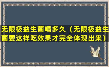 无限极益生菌是一种含有益生菌的保健品,旨在帮助调节肠道菌群平衡,增强消化系统的健康。关于喝多久的问题,这取决于个人的健康状况、生活习惯以及产品的使用说明。