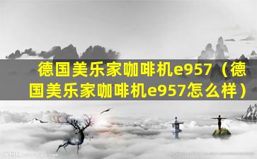 德国美乐家(Melitta)是一个知名的咖啡机品牌,以其高品质和创新技术而闻名。如果您提到的“e957”是指某个特定的咖啡机型号,那么这个型号可能是Melitta产品线中的一个。截至我的知识更新日期(2023年),Melitta的官方网站或主流零售商并没有列出名为“e957”的咖啡机型号。
