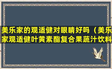 美乐家的观适健是一种针对眼睛健康的产品,它通常含有多种维生素和矿物质,旨在帮助改善眼睛健康和视力。这些产品可能包含维生素A、C、E、锌、欧米伽-3脂肪酸等成分,这些都是公认的对眼睛有益的营养素。