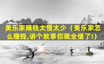 关于“美乐家赚钱太慢太少”的说法,首先需要明确“美乐家”指的是什么。如果是指某个特定的公司、品牌或者商业模式,那么其盈利速度和金额会受到多种因素的影响,包括但不限于市场需求、产品或服务的竞争力、运营效率、市场策略等。