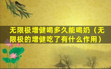 无限极增健是一种保健品,其主要成分包括多种植物提取物,旨在帮助调节身体机能,增强免疫力。关于“无限极增健喝多久能喝奶”的问题,并没有直接的科学依据或官方说明。