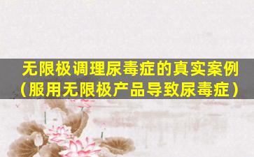 关于“无限极调理尿毒症的真实案例”,目前没有科学证据支持无限极产品能够治疗尿毒症。尿毒症是一种严重的肾脏疾病,通常需要专业的医疗治疗,包括药物治疗、透析或肾脏移植等。