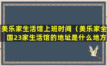 为了获得最准确的信息,建议您直接联系您所在地区的美乐家生活馆,或者访问美乐家的官方网站查找相关信息。您也可以尝试在美乐家的官方网站上查找店铺定位器,以获取特定店铺的联系方式和营业时间。
