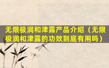 无限极润和津露是无限极公司生产的一款产品,它通常被宣传为具有滋润和保湿的功效。关于其功效的评价,需要基于科学研究和用户反馈来综合判断。