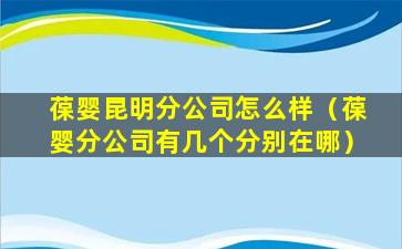 如果你想了解葆婴昆明分公司的具体情况,建议你可以通过以下几个途径获取信息: