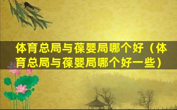 您的问题似乎存在误解,因为“体育总局”和“葆婴局”是两个完全不同的实体,它们分别属于不同的领域,因此无法直接比较哪个“好”。下面我将分别介绍这两个实体,以便您更好地理解它们。