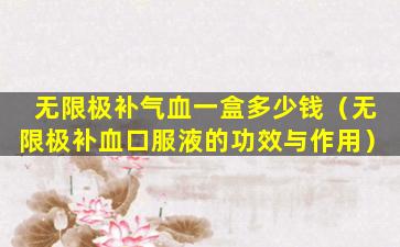 无限极是中国的一个保健品品牌,其产品线包括多种补气血的产品。由于产品种类繁多,价格也会因产品类型、规格、销售渠道等因素而有所不同。通常,无限极的产品价格可以在其官方网站、授权的零售商或者电商平台上查询到。