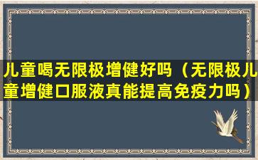 无限极增健是一种保健品,通常含有多种维生素和矿物质,旨在帮助补充日常饮食中可能缺乏的营养素。对于儿童来说,是否适合喝无限极增健或其他类似的保健品,需要谨慎考虑。