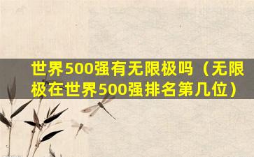 截至我的知识更新日期(2023年),无限极(Infinitus)并不是世界500强企业。世界500强是由《财富》杂志每年根据企业的营业收入进行排名的全球最大公司的名单。无限极是一家总部位于中国广州的直销公司,主要从事健康产品的研发、生产和销售,但它并没有进入世界500强的行列。
