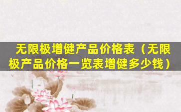 由于产品价格可能会随时间、地区、促销活动等因素变化,我无法提供一个确切的“增健”系列产品的价格一览表。通常,无限极的产品价格可以在其官方网站、授权的零售商或经销商处查询到。