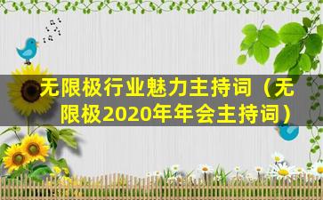 请注意,以上主持词是根据无限极公司的特点虚构的,实际的主持词内容会根据具体活动和公司的实际情况进行调整。在撰写或使用主持词时,应确保内容的真实性和适宜性,并遵守相关法律法规。