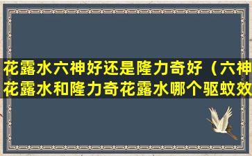 六神花露水和隆力奇花露水都是中国市场上比较知名的花露水品牌,它们都含有驱蚊成分,可以帮助驱赶蚊虫。但是,哪个品牌的驱蚊效果更好,这并没有一个统一的答案,因为驱蚊效果受到多种因素的影响,包括个人肤质、使用环境、蚊虫种类等。