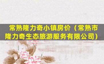 常熟隆力奇小镇位于中国江苏省常熟市,是一个集居住、商业、休闲于一体的综合性小镇。关于房价,由于房地产市场的价格会受到多种因素的影响,如地段、房屋类型、市场供需状况、政策调控等,因此房价会有所波动。