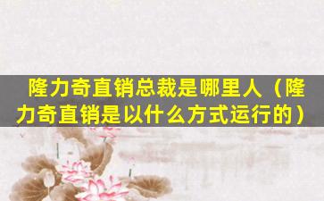 隆力奇(Longrich)是一家中国的直销公司,总部位于江苏省常熟市。关于隆力奇直销总裁的具体信息,由于我的知识截止日期是2023年,我无法提供最新的个人资料。通常,公司的高层管理人员信息会在公司的官方网站或者相关的商业新闻报道中公布。如果您需要了解隆力奇直销总裁的详细信息,建议您访问隆力奇的官方网站或者查阅最新的商业新闻报道。