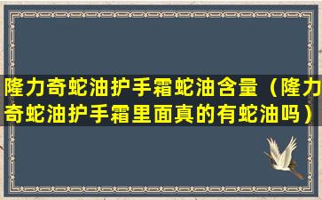 隆力奇蛇油护手霜是一款在中国市场上较为知名的护手产品,它以含有蛇油成分而著称。蛇油被认为具有滋润和修复皮肤的功效,尤其适合干燥、粗糙的手部皮肤。
