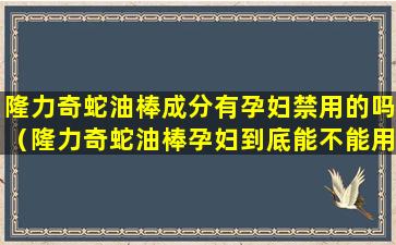 隆力奇蛇油棒是一种常见的外用产品,主要成分通常包括蛇油、甘油、维生素E等,用于滋润皮肤、缓解干燥和粗糙。对于孕妇来说,使用任何外用产品都应该谨慎,因为某些成分可能会被皮肤吸收并影响胎儿。