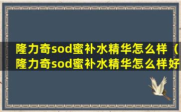 隆力奇(Longrich)是中国的一个知名品牌,提供多种个人护理和健康产品。SOD蜜补水精华是隆力奇的一款护肤产品,主要成分包括超氧化物歧化酶(SOD)、透明质酸等,旨在为肌肤提供补水和抗氧化保护。
