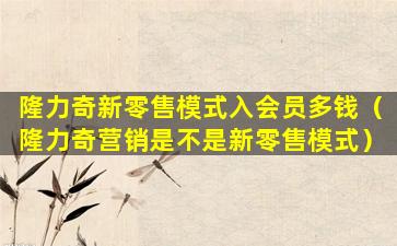 关于“隆力奇新零售模式入会员多钱”的问题,目前没有官方的详细信息。隆力奇是一家以健康产品为主的公司,其新零售模式可能涉及会员制度,但具体的会员费用、会员权益等信息需要通过官方渠道或者官方授权的销售渠道来获取。