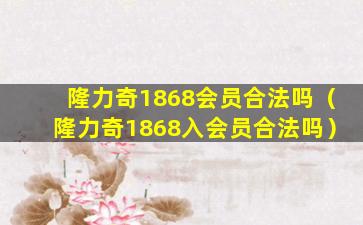 如果“隆力奇1868入会员”是指隆力奇公司推出的某种会员制度,那么这种会员制度的合法性取决于以下几个方面: