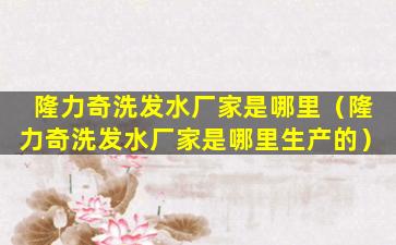 隆力奇(Longrich)是一家中国的多元化企业,总部位于江苏省苏州市。隆力奇成立于1986年,最初以生产日化产品起家,后来逐渐扩展到生物科技、健康产品、房地产、金融等多个领域。隆力奇的洗发水和其他日化产品主要是在中国国内生产的,其生产基地位于江苏省苏州市的隆力奇工业园区。