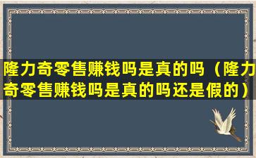 如果您对某个具体的“隆力奇零售赚钱”的宣传或信息有疑问,建议直接联系隆力奇公司或相关监管机构进行核实。