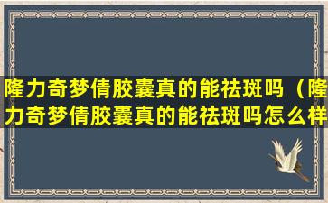 隆力奇梦倩胶囊是一种在中国市场上销售的产品,它声称能够帮助改善皮肤状况,包括祛斑。关于这类产品的效果,需要谨慎对待。