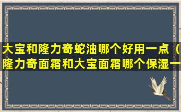 隆力奇(Longrich)和大宝(Dabao)都是中国的知名护肤品牌,它们的面霜产品在市场上有一定的知名度。关于哪个品牌的面霜保湿效果更好,这通常取决于具体产品的配方、成分以及个人的肤质和使用感受。