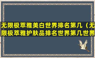 关于“萃雅护肤品排名世界第几”的问题,由于护肤品市场竞争激烈,且不同机构和媒体可能会根据不同的标准和数据来源发布不同的排名,因此很难给出一个确切的全球排名。无限极作为一个以中国市场为主的品牌,在国际市场上的知名度和影响力可能不如一些国际大牌。
