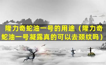 隆力奇蛇油一号凝露是隆力奇公司生产的一款护肤产品,它含有蛇油成分,据称可以帮助滋润皮肤,改善皮肤干燥等问题。关于去颈纹的效果,这通常取决于多种因素,包括颈纹的深浅、个人的皮肤类型、使用产品的频率和方法等。