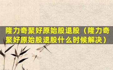 如果有关“隆力奇聚好原始股退股”的具体情况,建议咨询专业的法律顾问或直接联系公司了解详细信息。同时,投资者在处理原始股退股事宜时,应当谨慎,确保了解所有相关的法律条款和可能的风险。