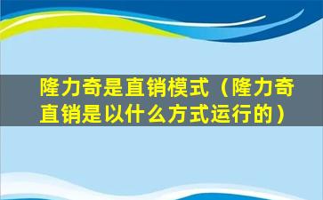 隆力奇(Longrich)是一家中国的直销公司,主要从事健康、美容、家居和个人护理产品的研发、生产和销售。隆力奇的直销模式通常涉及以下几个方面: