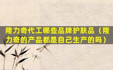 隆力奇(Longrich)是一家中国的多元化企业,涉及健康、美容、家居等多个领域。在护肤品代工方面,隆力奇为多个品牌提供OEM(Original Equipment Manufacturer,原始设备制造商)和ODM(Original Design Manufacturer,原始设计制造商)服务。由于代工业务通常涉及商业机密,具体代工的品牌可能不会公开。