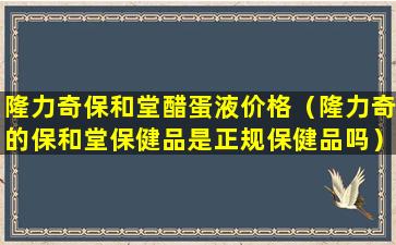 隆力奇保和堂醋蛋液是一种结合了传统中医理念和现代营养学的产品,它通常包含醋、鸡蛋等成分,据称有助于调节身体机能、增强免疫力等。关于“隆力奇保和堂醋蛋液”的具体价格,由于市场价格会随时间、地区、销售渠道等因素变化,我无法提供一个确切的数字。
