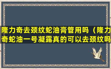 隆力奇蛇油一号凝露是隆力奇公司生产的一款护肤产品,它含有蛇油成分,据称可以帮助滋润皮肤,改善皮肤干燥等问题。关于去颈纹的效果,这通常取决于颈纹的类型和形成原因。